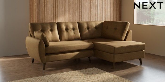 7.2.10 Wilson Buttoned Back Medium Corner Chaise - Right Hand Luxe Chenille Honey Yellow Retro Tapered - Mid | Made Click here to use our website with more accessibility support, for example screen readers