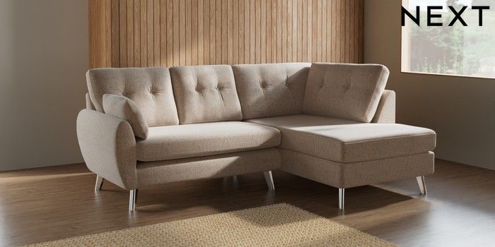 7.2.10 Wilson Buttoned Back Medium Corner Chaise - Right Hand Multi Weave Mid Natural Metal Tapered - Chrome | Made Click here to use our website with more accessibility support, for example screen readers