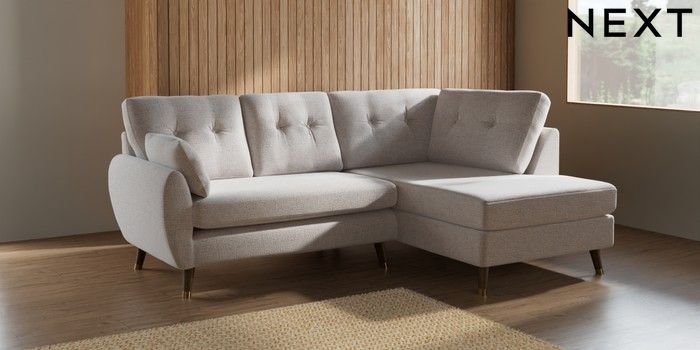 7.2.10 Wilson Buttoned Back Medium Corner Chaise - Right Hand Multi Weave Oyster Low Retro Tapered Metal Cap - Mid | Made Click here to use our website with more accessibility support, for example screen readers