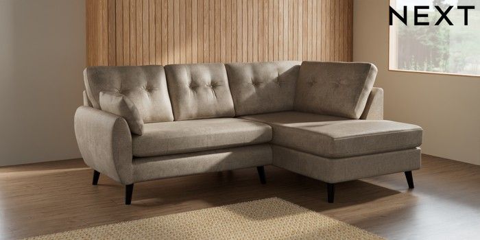 7.2.10 Wilson Buttoned Back Medium Corner Chaise - Right Hand Plush Chenille Light Natural Retro Tapered - Dark | Made Click here to use our website with more accessibility support, for example screen readers