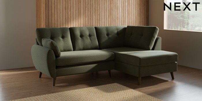 7.2.10 Wilson Buttoned Back Medium Corner Chaise - Right Hand Ripple Chenille Mid Moss Green Retro Tapered - Mid | Made Click here to use our website with more accessibility support, for example screen readers