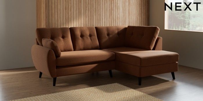 7.2.10 Wilson Buttoned Back Medium Corner Chaise - Right Hand Ripple Chenille Mid Rust Brown Retro Tapered - Dark | Made Click here to use our website with more accessibility support, for example screen readers