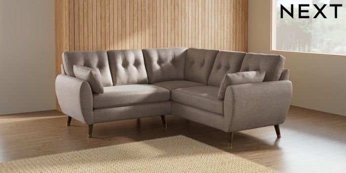7.2.10 Wilson Buttoned Back Small Corner Sofa - Universal Boucle Chenille Light Natural Low Retro Tapered Metal Cap - Mid | Made Click here to use our website with more accessibility support, for example screen readers