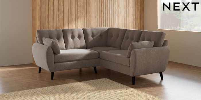 7.2.10 Wilson Buttoned Back Small Corner Sofa - Universal Chunky Chenille Light Dove Retro Tapered - Dark | Made Click here to use our website with more accessibility support, for example screen readers