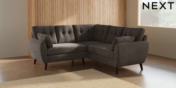 7.2.10 Wilson Buttoned Back Small Corner Sofa - Universal Chunky Chenille Mink Brown Retro Tapered - Dark Brown | Made Click here to use our website with more accessibility support, for example screen readers