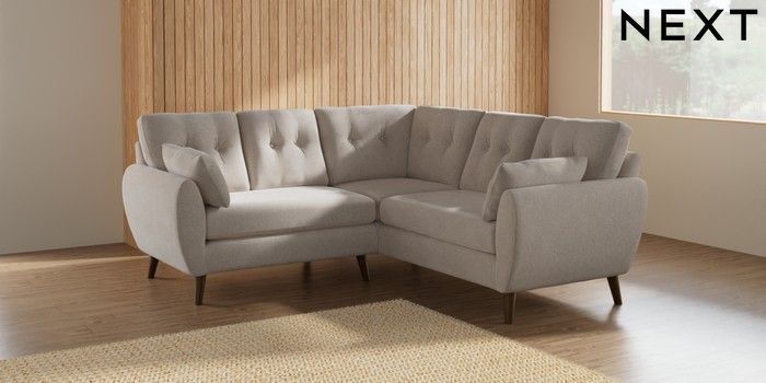 7.2.10 Wilson Buttoned Back Small Corner Sofa - Universal Chunky Chenille Oyster Retro Tapered - Mid | Made Click here to use our website with more accessibility support, for example screen readers