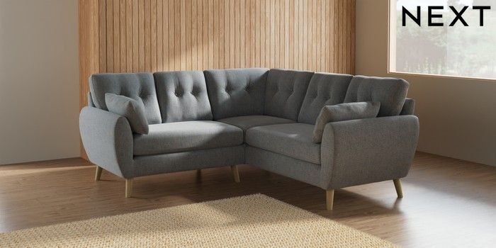 7.2.10 Wilson Buttoned Back Small Corner Sofa - Universal Chunky Marl Mid Grey Retro Tapered - Light | Made Click here to use our website with more accessibility support, for example screen readers