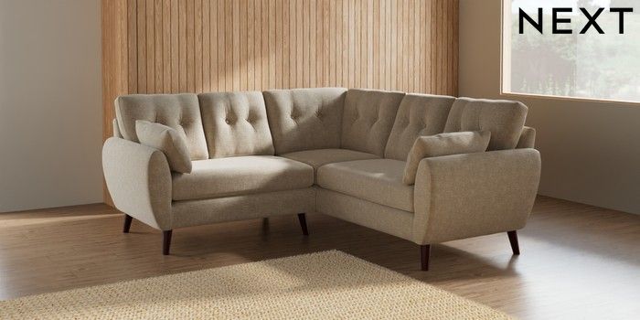 7.2.10 Wilson Buttoned Back Small Corner Sofa - Universal Chunky Weave Cream Retro Tapered - Dark Brown | Made Click here to use our website with more accessibility support, for example screen readers