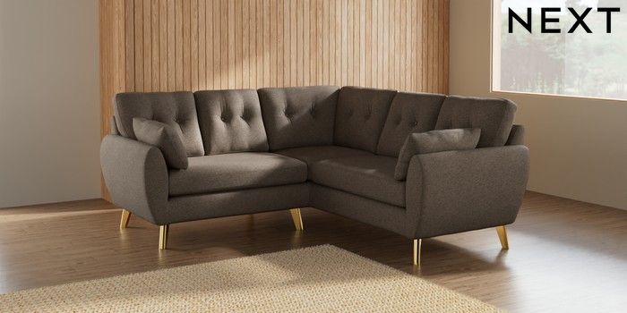 7.2.10 Wilson Buttoned Back Small Corner Sofa - Universal Chunky Weave Dark Natural Metal Tapered - Gold | Made Click here to use our website with more accessibility support, for example screen readers