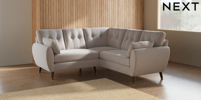 7.2.10 Wilson Buttoned Back Small Corner Sofa - Universal Cotswold Chenille Oyster Low Retro Tapered Metal Cap - Mid | Made Click here to use our website with more accessibility support, for example screen readers