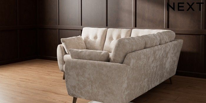 7.2.10 Wilson Buttoned Back Small Corner Sofa - Universal Distressed Velour Mid Natural Retro Tapered - Mid | Made Click here to use our website with more accessibility support, for example screen readers