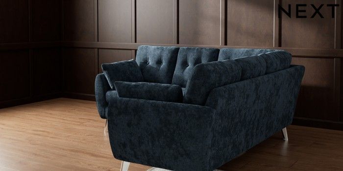 7.2.10 Wilson Buttoned Back Small Corner Sofa - Universal Distressed Velour Midnight Blue Metal Tapered - Chrome | Made Click here to use our website with more accessibility support, for example screen readers