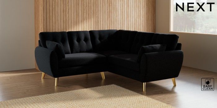 7.2.10 Wilson Buttoned Back Small Corner Sofa - Universal Fine Chenille Easy Clean Black Metal Tapered - Gold | Made Click here to use our website with more accessibility support, for example screen readers