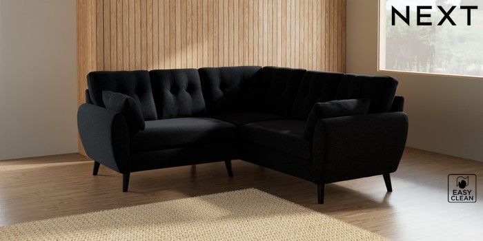 7.2.10 Wilson Buttoned Back Small Corner Sofa - Universal Fine Chenille Easy Clean Black Retro Tapered - Dark | Made Click here to use our website with more accessibility support, for example screen readers