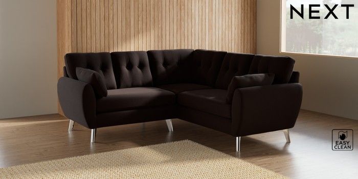 7.2.10 Wilson Buttoned Back Small Corner Sofa - Universal Fine Chenille Easy Clean Chocolate Brown Metal Tapered - Chrome | Made Click here to use our website with more accessibility support, for example screen readers