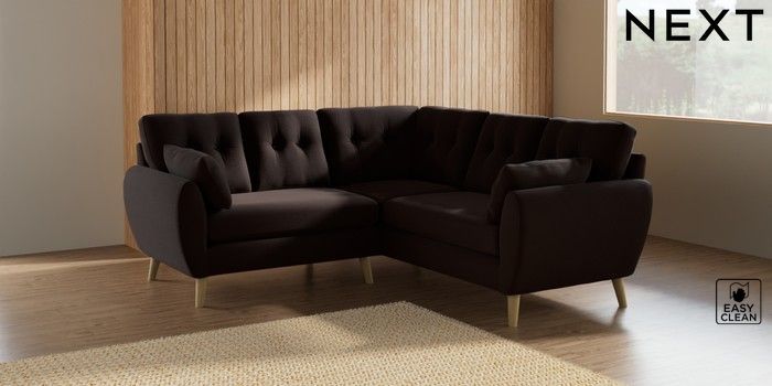 7.2.10 Wilson Buttoned Back Small Corner Sofa - Universal Fine Chenille Easy Clean Chocolate Brown Retro Tapered - Light | Made Click here to use our website with more accessibility support, for example screen readers