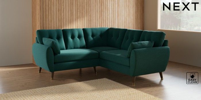 7.2.10 Wilson Buttoned Back Small Corner Sofa - Universal Fine Chenille Easy Clean Dark Juniper Green Low Retro Tapered Metal Cap - Mid | Made Click here to use our website with more accessibility support, for example screen readers