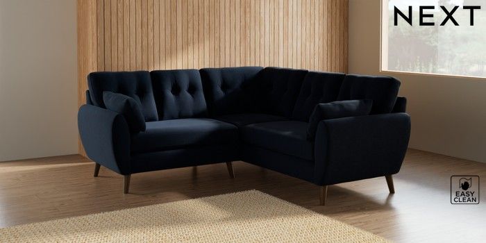 7.2.10 Wilson Buttoned Back Small Corner Sofa - Universal Fine Chenille Easy Clean Dark Navy Blue Retro Tapered - Mid | Made Click here to use our website with more accessibility support, for example screen readers