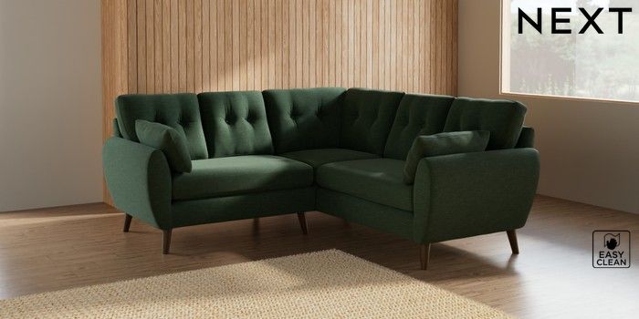 7.2.10 Wilson Buttoned Back Small Corner Sofa - Universal Fine Chenille Easy Clean Mid Khaki Green Retro Tapered - Mid | Made Click here to use our website with more accessibility support, for example screen readers