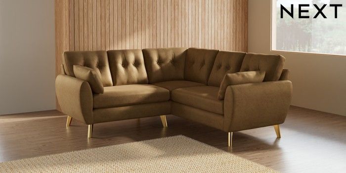 7.2.10 Wilson Buttoned Back Small Corner Sofa - Universal Luxe Chenille Honey Yellow Metal Tapered - Gold | Made Click here to use our website with more accessibility support, for example screen readers