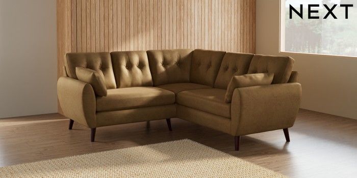 7.2.10 Wilson Buttoned Back Small Corner Sofa - Universal Luxe Chenille Honey Yellow Retro Tapered - Dark Brown | Made Click here to use our website with more accessibility support, for example screen readers