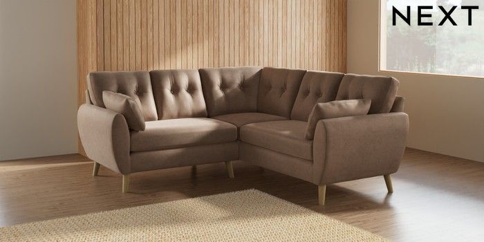 7.2.10 Wilson Buttoned Back Small Corner Sofa - Universal Luxe Chenille Mid Natural Retro Tapered - Light | Made Click here to use our website with more accessibility support, for example screen readers