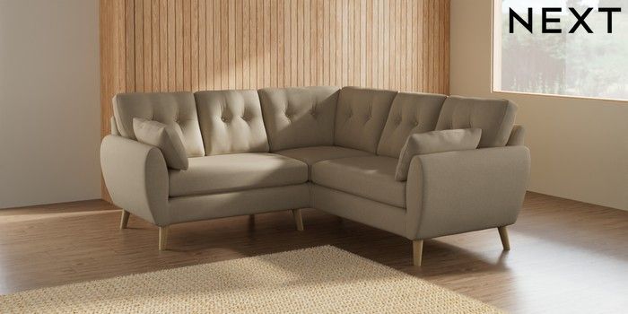 7.2.10 Wilson Buttoned Back Small Corner Sofa - Universal Natural Mix Light Natural Retro Tapered - Light | Made Click here to use our website with more accessibility support, for example screen readers