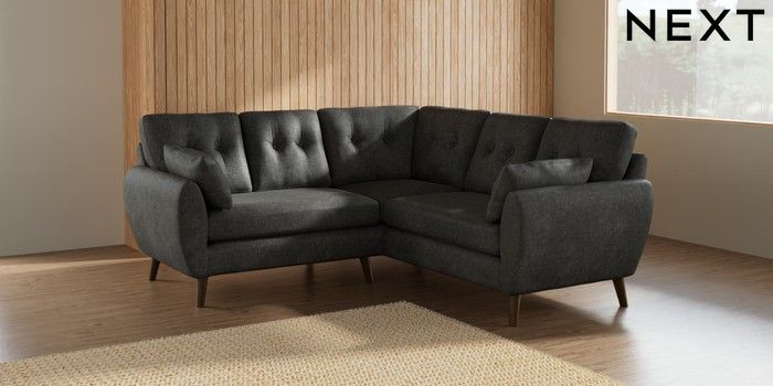 7.2.10 Wilson Buttoned Back Small Corner Sofa - Universal Plush Chenille Dark Grey Retro Tapered - Mid | Made Click here to use our website with more accessibility support, for example screen readers