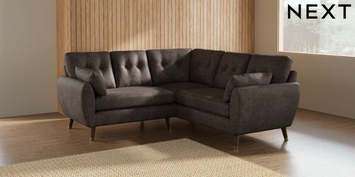 7.2.10 Wilson Buttoned Back Small Corner Sofa - Universal Plush Chenille Mink Brown Low Retro Tapered Metal Cap - Mid | Made Click here to use our website with more accessibility support, for example screen readers