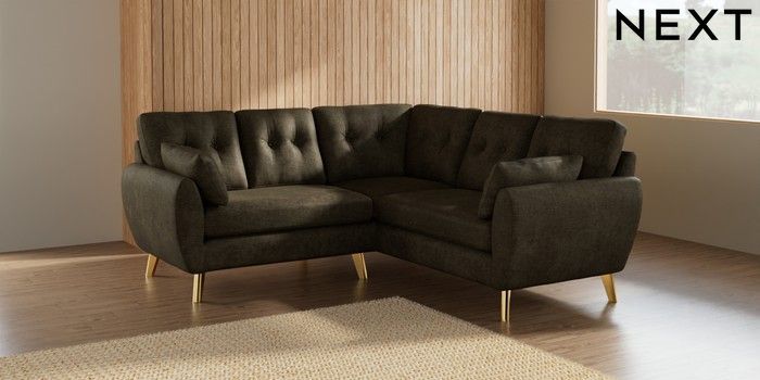 7.2.10 Wilson Buttoned Back Small Corner Sofa - Universal Plush Chenille Moss Green Metal Tapered - Gold | Made Click here to use our website with more accessibility support, for example screen readers