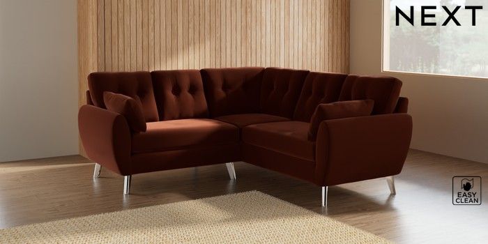 7.2.10 Wilson Buttoned Back Small Corner Sofa - Universal Plush Velvet Easy Clean Ginger Orange Metal Tapered - Chrome | Made Click here to use our website with more accessibility support, for example screen readers