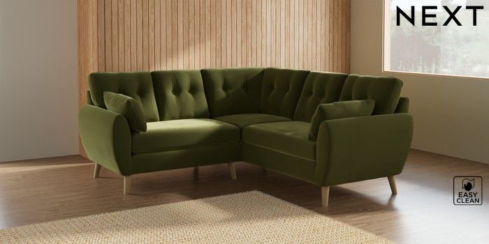 7.2.10 Wilson Buttoned Back Small Corner Sofa - Universal Plush Velvet Easy Clean Mid Olive Green Retro Tapered - Light | Made Click here to use our website with more accessibility support, for example screen readers
