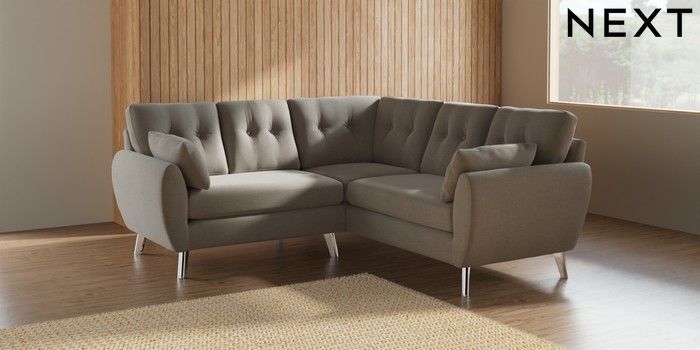 7.2.10 Wilson Buttoned Back Small Corner Sofa - Universal Ripple Chenille Light Natural Metal Tapered - Chrome | Made Click here to use our website with more accessibility support, for example screen readers