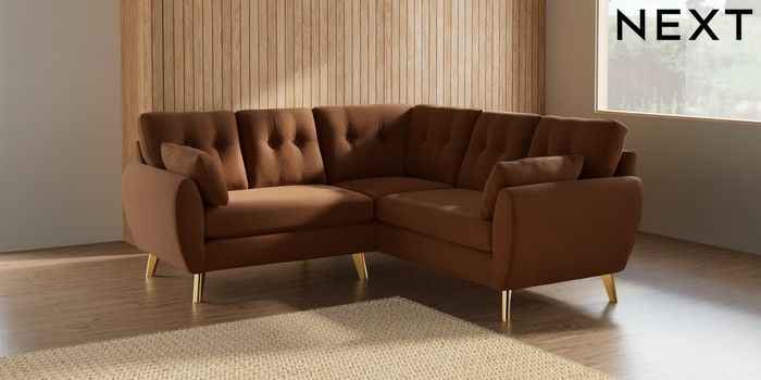 7.2.10 Wilson Buttoned Back Small Corner Sofa - Universal Ripple Chenille Mid Rust Brown Metal Tapered - Gold | Made Click here to use our website with more accessibility support, for example screen readers