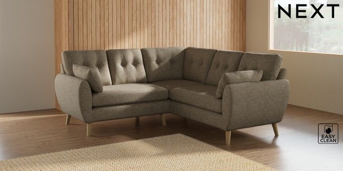 7.2.10 Wilson Buttoned Back Small Corner Sofa - Universal Woven Chenille Easy Clean Mid Natural Retro Tapered - Light | Made Click here to use our website with more accessibility support, for example screen readers