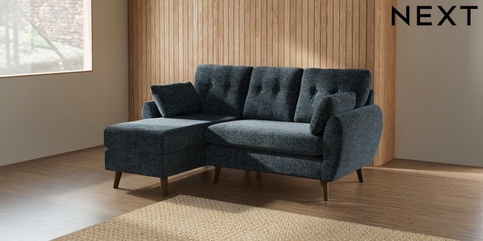7.2.10 Wilson Buttoned Back Small Sofa Chaise - Left Hand Chunky Chenille Dark Navy Blue Retro Tapered - Mid | Made Click here to use our website with more accessibility support, for example screen readers