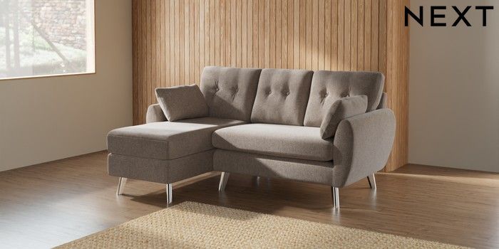 7.2.10 Wilson Buttoned Back Small Sofa Chaise - Left Hand Chunky Chenille Light Dove Metal Tapered - Chrome | Made Click here to use our website with more accessibility support, for example screen readers