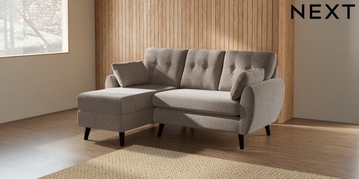 7.2.10 Wilson Buttoned Back Small Sofa Chaise - Left Hand Chunky Chenille Light Dove Retro Tapered - Dark | Made Click here to use our website with more accessibility support, for example screen readers