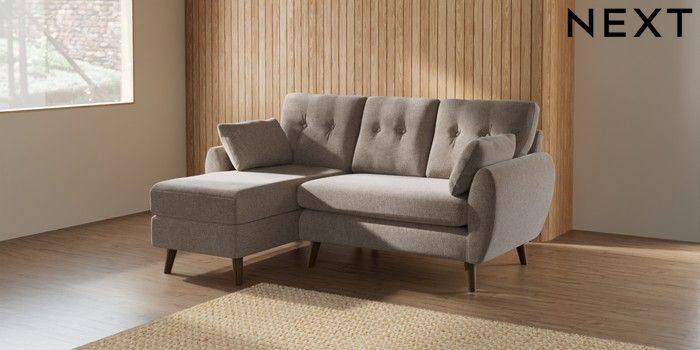 7.2.10 Wilson Buttoned Back Small Sofa Chaise - Left Hand Chunky Chenille Light Dove Retro Tapered - Mid | Made Click here to use our website with more accessibility support, for example screen readers