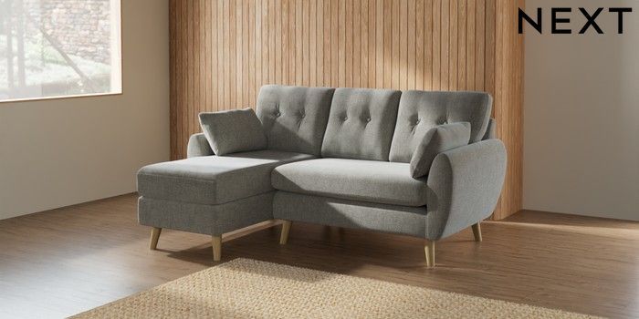 7.2.10 Wilson Buttoned Back Small Sofa Chaise - Left Hand Chunky Chenille Light Grey Retro Tapered - Light | Made Click here to use our website with more accessibility support, for example screen readers