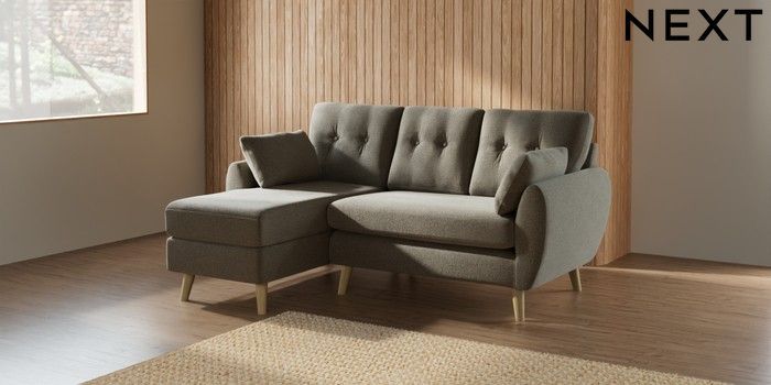 7.2.10 Wilson Buttoned Back Small Sofa Chaise - Left Hand Chunky Marl Light Olive Green Retro Tapered - Light | Made Click here to use our website with more accessibility support, for example screen readers