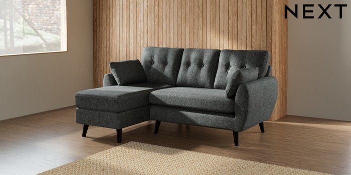 7.2.10 Wilson Buttoned Back Small Sofa Chaise - Left Hand Cotswold Chenille Dark Grey Retro Tapered - Dark | Made Click here to use our website with more accessibility support, for example screen readers