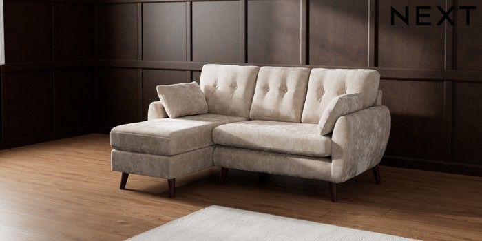 7.2.10 Wilson Buttoned Back Small Sofa Chaise - Left Hand Distressed Velour Mid Natural Retro Tapered - Dark Brown | Made Click here to use our website with more accessibility support, for example screen readers