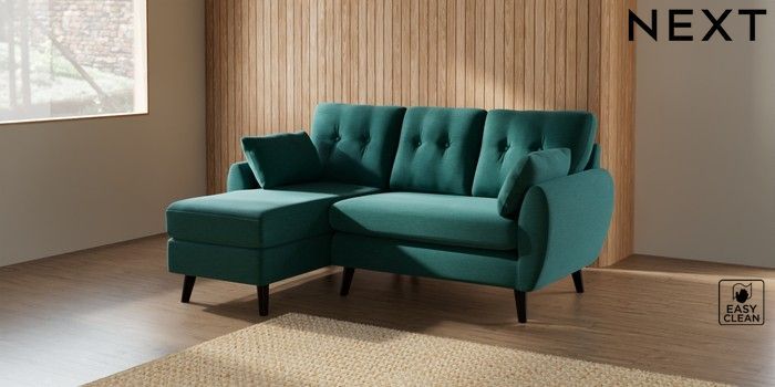 7.2.10 Wilson Buttoned Back Small Sofa Chaise - Left Hand Fine Chenille Easy Clean Dark Juniper Green Retro Tapered - Dark | Made Click here to use our website with more accessibility support, for example screen readers