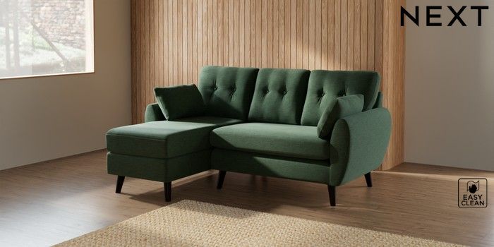 7.2.10 Wilson Buttoned Back Small Sofa Chaise - Left Hand Fine Chenille Easy Clean Mid Khaki Green Retro Tapered - Dark | Made Click here to use our website with more accessibility support, for example screen readers