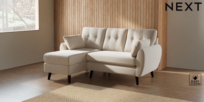 7.2.10 Wilson Buttoned Back Small Sofa Chaise - Left Hand Fine Chenille Easy Clean Oyster Retro Tapered - Dark | Made Click here to use our website with more accessibility support, for example screen readers