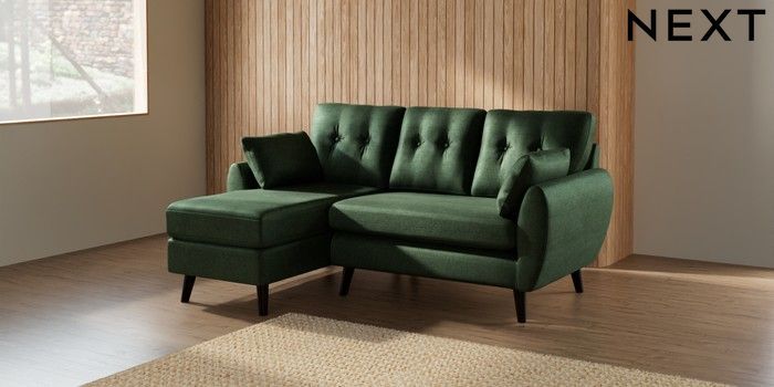7.2.10 Wilson Buttoned Back Small Sofa Chaise - Left Hand Luxe Chenille Dark Green Retro Tapered - Dark | Made Click here to use our website with more accessibility support, for example screen readers