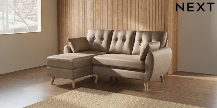 7.2.10 Wilson Buttoned Back Small Sofa Chaise - Left Hand Luxe Chenille Mid Camel Beige Retro Tapered - Light | Made Click here to use our website with more accessibility support, for example screen readers