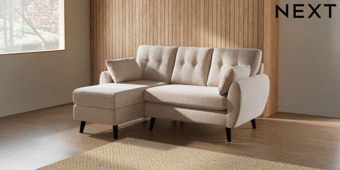 7.2.10 Wilson Buttoned Back Small Sofa Chaise - Left Hand Multi Weave Mid Natural Retro Tapered - Dark | Made Click here to use our website with more accessibility support, for example screen readers