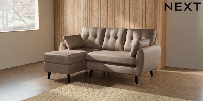 7.2.10 Wilson Buttoned Back Small Sofa Chaise - Left Hand Plush Chenille Mid Natural Retro Tapered - Dark | Made Click here to use our website with more accessibility support, for example screen readers